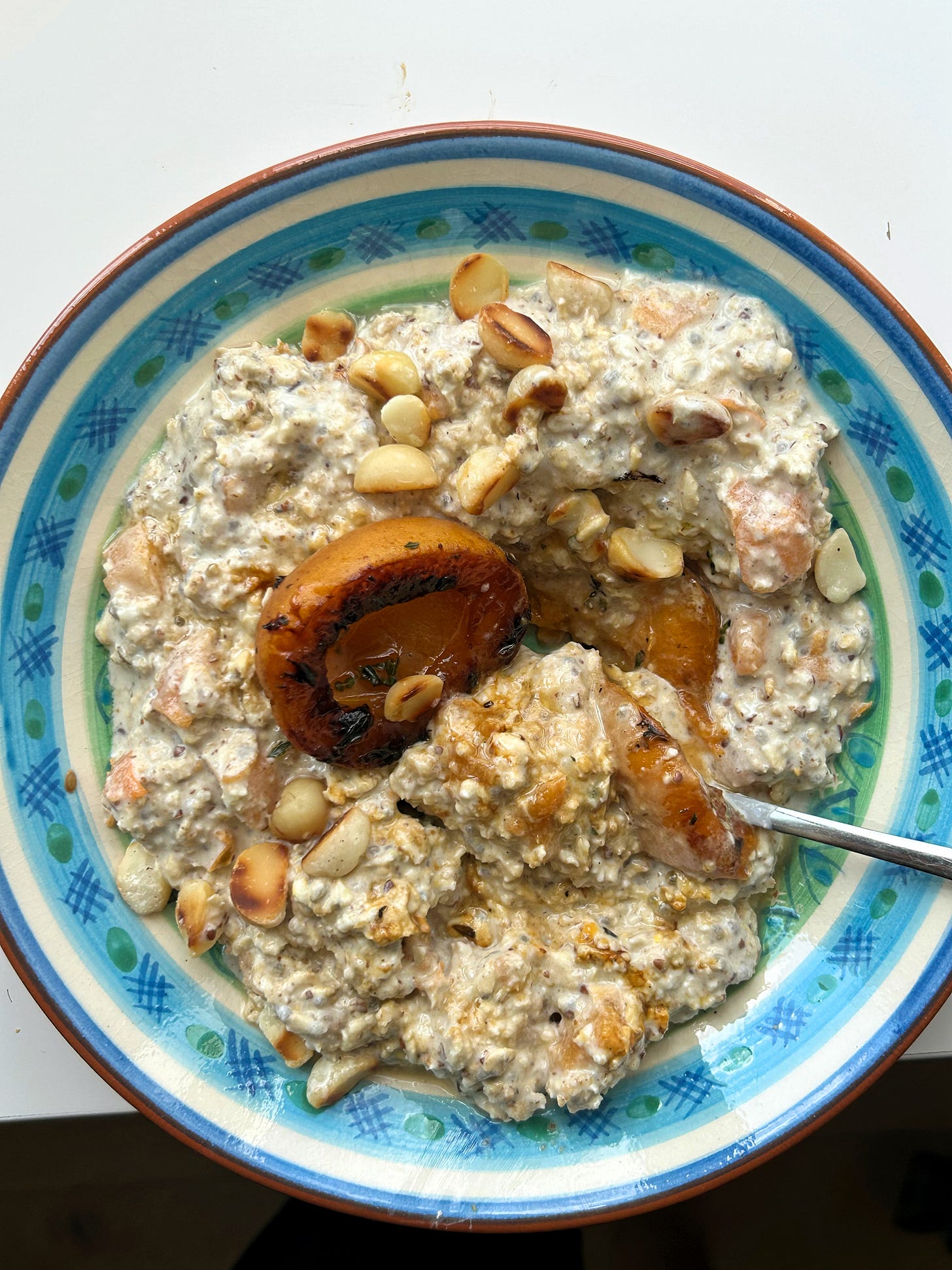 Mix the spices into the oat base, with the diced apricots, vanilla and honey.